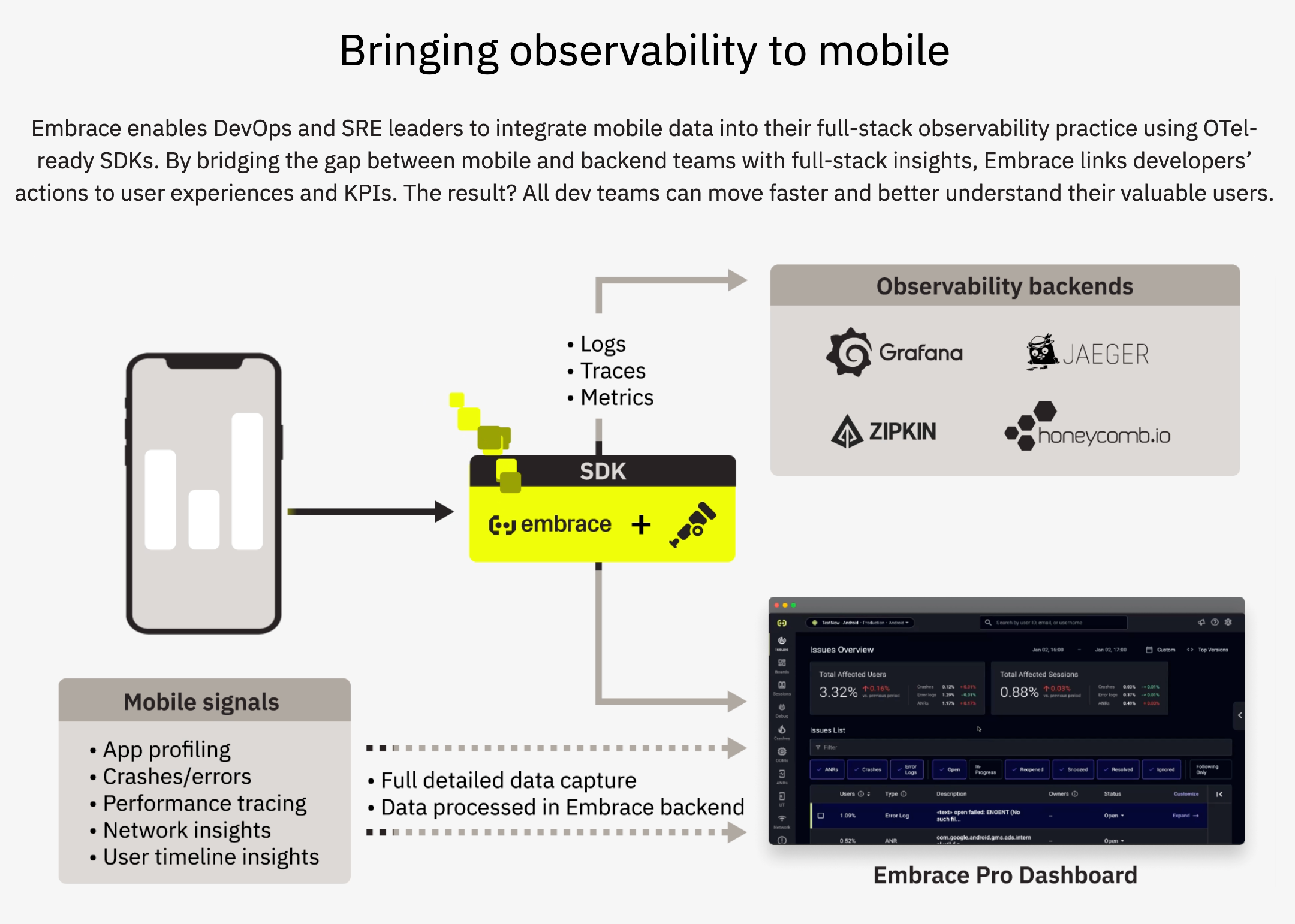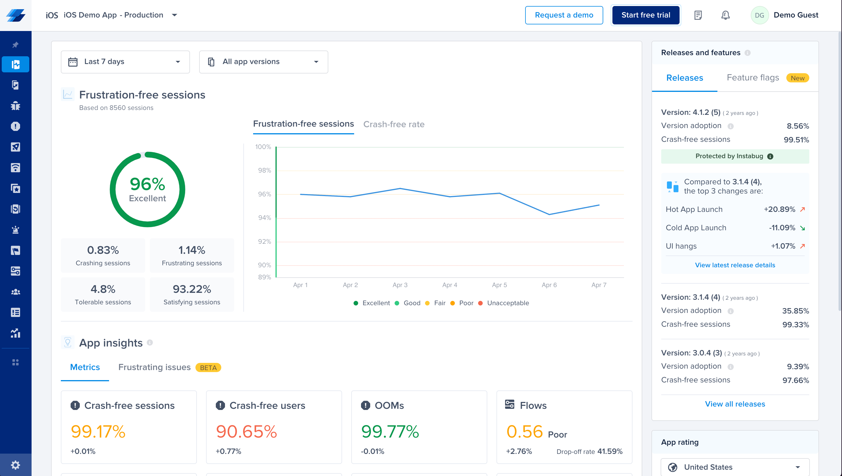 Performance Monitoring: Tracks critical app metrics with session replays providing context